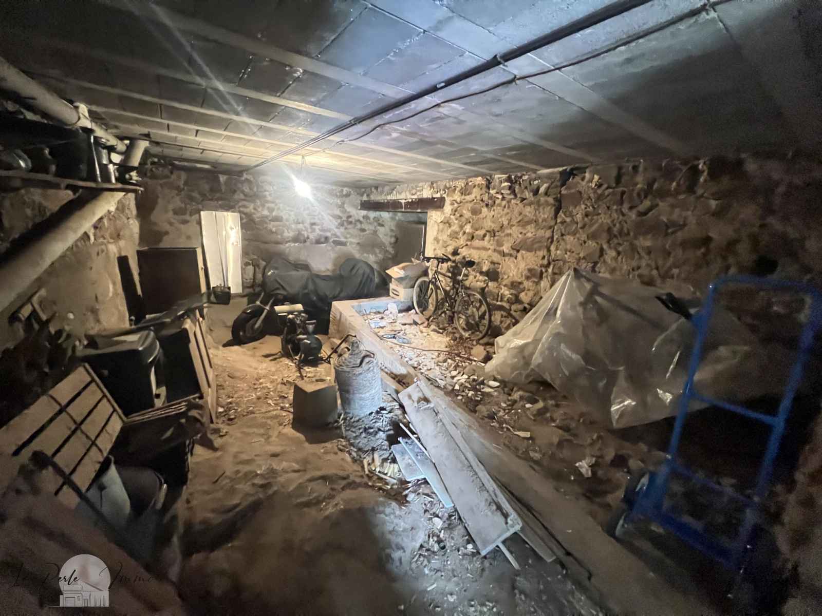 RDC : 1 grand garage 58m² avec 1 très belle hauteur sous plafond, 1 buranderie de 10m²