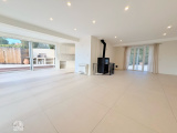 Une cheminée à foyer fermé vient sublimer ce niveau, idéale pour de chaleureuses soirées d’hiver tout en garantissant une économie de chauffage.